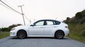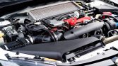 A turbocharged and intercooled 2.5-liter DOHC flat-four is equipped with an optional sport exhaust and was factory rated at 305 horsepower and 290 lb-ft of torque. Power is delivered to all four wheels through a six-speed manual transmission, front and rear limited-slip differentials, and a driver-controlled center differential. The timing belt and clutch are said to have been replaced in 2019, while maintenance in January 2021 included an oil change, fitting a new air filter, and replacement of the belts for the power steering pump and A/C compressor.