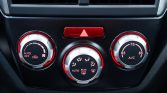 The cabin features heated front seats upholstered in black Alcantara with red stitching and STi logos embroidered in the headrests. Black and silver trim aLents the door panels, dashboard, and center console. Amenities include automatic climate control, Bluetooth connectivity, cruise control, 60/40 split-folding rear seats, and an AM/FM/CD stereo. The cabin air filter was replaced in January 2021.