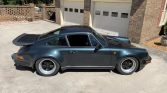 This 1984 Porsche 911 Carrera Coupe is finished in Moss Green Metallic over a black leather interior and is powered by a 3.2-liter flat-six paired with a five-speed manual transaxle. The body has been modified with wider fenders, and additional equipment includes 16″ Fuchs wheels, a sunroof, Bosch H4 headlights, fog lights, Bilstein shocks, 930 Turbo tie rod ends, SSI heat exchangers, black leather power-adjustable sport seats, a MOMO steering wheel, and a Sony head unit.