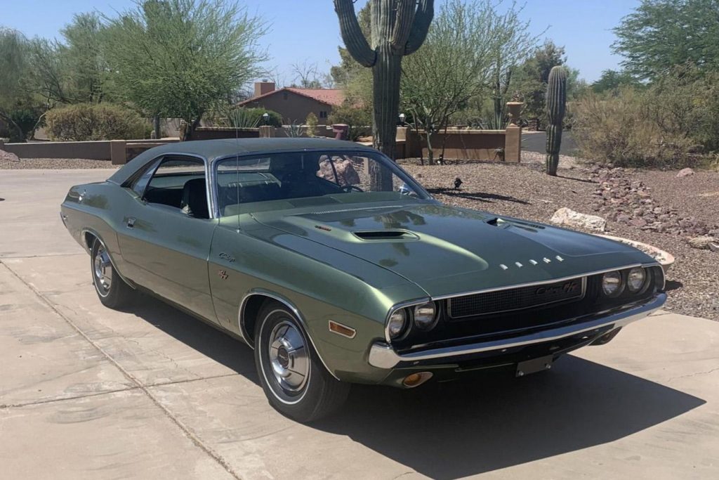 This 1970 Dodge Challenger R/T was purchased by the seller in 2017, and a multi-year refurbishment was subsequently performed. Rust repairs were performed and the exterior was refinished in its factory Light Green Metallic with a matching vinyl roof, the interior was refreshed with green vinyl upholstery, and the numbers-matching 440ci V8 was rebuilt. Power is sent to the rear wheels through a three-speed 727 TorqueFlite automatic transmission, and additional equipment includes a center console, Rallye instrumentation, and wheel covers.