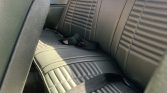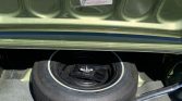 Steel wheels wear replacement factory wheel covers and are mounted with older 14″ Goodyear white-stripe tires, and a matching spare is stored in the trunk. The car has drum brakes fitted to the front and rear.