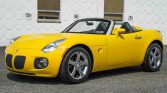 This 2007 Pontiac Solstice GXP is finished in yellow with a black convertible top over black leather and powered by a turbocharged 2.0-liter inline-four paired with a five-speed manual transmission. Equipment includes a limited-slip differential, 18″ polished aluminum wheels, cruise control, air conditioning, and a factory CD stereo.