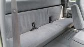 The cabin is upholstered in gray cloth with matching door panels and carpeting. A trailer brake control module is mounted below the dashboard, and amenities include air conditioning, cruise control, a sliding rear window, inflatable lumbar supports, and power windows, locks, and mirrors.