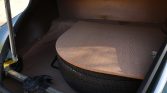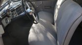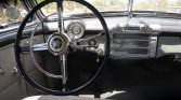 Black 15″ steel wheels wear chrome covers and wide whitewall tires. The car is equipped with four-wheel drum brakes and independent front suspension. The emergency brake was repaired in April 2021.