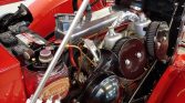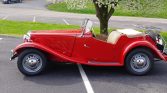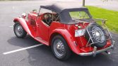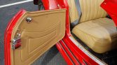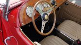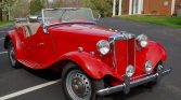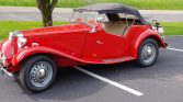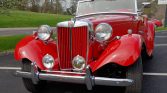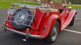This 1952 MG TD was refurbished during previous ownership and acquired by the seller in 2018. The car is finished in red over tan leather and is powered by a 1,250L inline-four paired with a retrofitted five-speed manual transmission. Features include a black soft-top with side curtains, a tan boot and tonneau cover, driving lights, chrome bumpers with overriders, a folding luggage rack, and a “smuggler’s box” built into the floor.