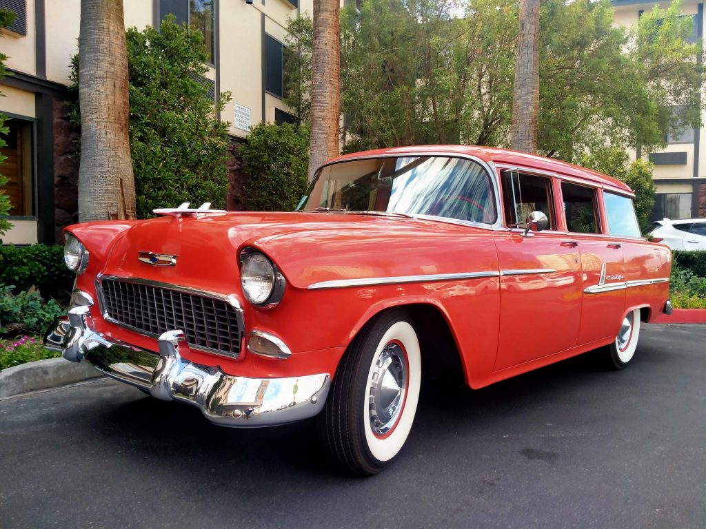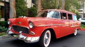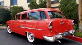 This 1955 Chevrolet Bel Air station wagon is said to have been purchased by the seller’s father in 1983, refurbished in 1989, moved from San Diego to Las Vegas in 2001, and inherited in 2015. The car is finished in Gypsy Red over a tan interior, and power is from a 265ci V8 paired with a two-speed Powerglide automatic transmission. Additional equipment includes Bel Air trim, 15″ steel wheels with covers and wide-whitewall tires, a heater, dual…
