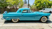 14″ wire wheels wear Thunderbird center caps and are wrapped in Bedford whitewall tires, and a matching spare is mounted on the rear bumper.