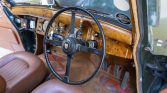 The M variant of the Mk VII is equipped with circular grilles over the horn openings as well as wraparound bumpers and tail lights featuring built-in reflectors. This example is finished in British Racing Green, and notable features include a leather hood strap,a sunroof driving lights, Mille Miglia event graphics, and body-colored treatments for the aftermarket windshield visor and rear fender skirts.