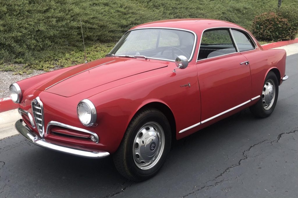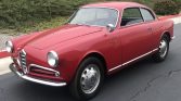 This 1957 Alfa Romeo Giulietta Sprint is said to have remained with its previous owner for over three decades and was acquired in early 2020 by the seller. It is powered by a numbers-matching 1,290cc twin-cam inline-four paired with a four-speed manual transmission. The car has been refinished in red over black vinyl and red fabric upholstery, and equipment includes an AM radio, 15” steel wheels with polished covers, and Quadrifoglio badging.