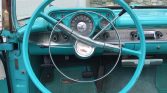 Body-color 14″ steel wheels feature polished covers and are wrapped in Coker Classic whitewall tires. The car is equipped with power steering and power-assisted brakes. Service in October 2019 included installing a brake master cylinder seal and bleeding the system. A set of fender skirts is included in the sale.