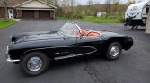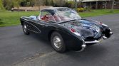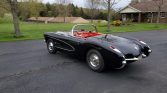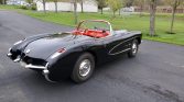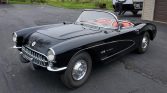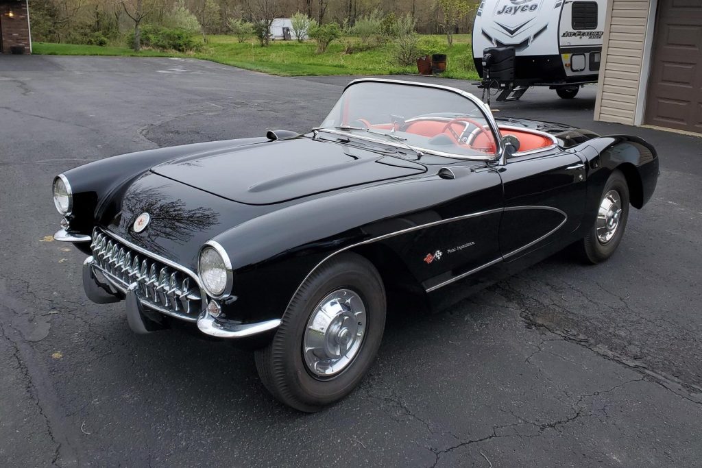 This 1957 Chevrolet Corvette is powered by a fuel-injected EL-code 283ci V8 paired with a four-speed manual transmission and is finished in black over red. The car spent time in Arizona and was acquired by the seller and relocated to Pennsylvania in 2016. A refurbishment completed under previous ownership reportedly included a repaint and balancing and blueprinting of the engine. Features include a black convertible top and a removable hardtop. The oil was changed in 2020.
