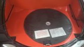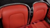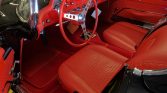 The cabin features red vinyl with textured inserts along with a matching dashboard, carpets, and door panels. Equipment includes a replacement shifter, seat belts, and a dash-mounted rear-view mirror. Neither a heater nor a radio is installed, and the removed shifter is included in the sale.