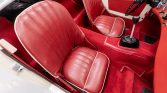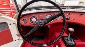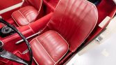 The cockpit is trimmed in red vinyl with a matching dashboard and door trim. The seller states that the interior has been reupholstered save for the seats and that work included replacing the wiring harness, switchgear, and carpets.