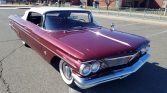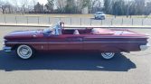 This 1960 Pontiac Parisienne is a Canadian-market convertible that was sold new by Grant Brown Motors in Toronto, Ontario, and was acquired by the seller circa 2005. The car is finished in metallic red over a red vinyl interior and is powered by a 283ci Turbo-Fire V8 paired with a two-speed automatic transmission. Factory equipment includes a power-retractable soft top, power-adjustable front bench seat, power windows, power brakes, and a Wonder Bar AM radio.
