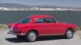 This 1961 Alfa Romeo Giulietta Sprint is finished in red over a refreshed black interior and has been fitted with a 1.7-liter twin-cam inline-four and a five-speed manual transmission. Equipment includes dual Weber carburetors, an exhaust header, a MagnaFlow muffler, front disc brakes, Koni shocks, 15″ wheels with hubcaps, square-weave carpeting, and a Nardi steering wheel.