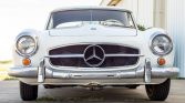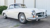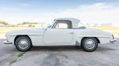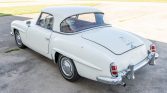 This 1961 Mercedes-Benz 190SL was purchased by the seller in 1976 following ownership history in Colorado, and it has reportedly been stored since 1979 with intermittent periods of use. The car is finished in white over red leather upholstery, and it is powered by a 1.9-liter inline-four paired with a four-speed manual transmission. Equipment includes a black soft top, a body-color removable hardtop, 13″ steel wheels, chromed hubcaps, and an aftermarket AM/FM push-button radio. Recent service is…