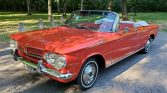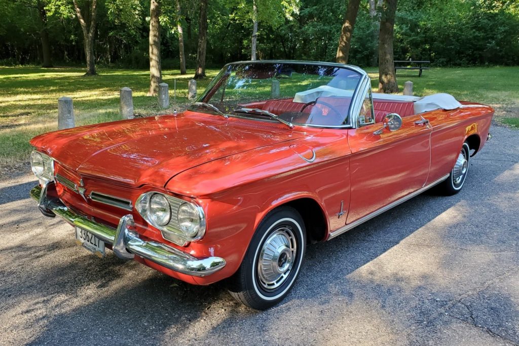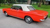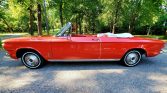 This 1962 Chevrolet Corvair Monza 900 convertible is finished in red over red vinyl and is equipped with a white convertible top, a heater/defroster, a padded dashboard, and a push-button AM radio. Power is supplied by a 145ci flat-six mated to a four-speed manual transmission, and service during current ownership is said to have included replacing the pushrod-tube seals, cleaning and resealing the oil cooler, and changing the oil. The car was acquired by the seller’s father out of North Carolina in 2012.