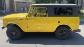 This 1964 International Harvester Scout 80 was refinished in yellow and black over a matching two-tone interior under previous ownership, reportedly in 2005. Power is from a carbureted 152ci inline-four paired with a three-speed manual gearbox and a two-speed transfer case. Additional equipment includes a suspension lift, black steel wheels with 31″ tires, a diamond-plate rear bumper, and a removable hardtop. The carburetor is said to have been rebuilt and the braking system refreshed along with replacement of the clutch,…