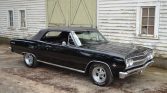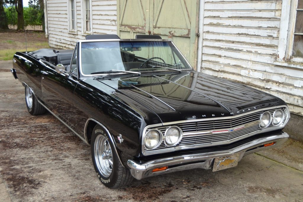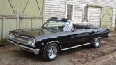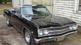 This 1965 Chevrolet Chevelle Malibu SS convertible is finished in black over matching vinyl and powered by a 350ci V8 paired with a column-shifted three-speed manual transmission. Equipment includes a black soft top, a cassette stereo, power windows, and 15″ Cragar five-spoke alloy wheels. The car is said to have been refurbished by the previous owner and was acquired in 2013 by the current owner. Work has since included replacement of the steering knuckles, fuel pump, starter, and battery.