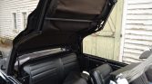 The seating surfaces are upholstered in black vinyl with a matching dashboard, door panels, carpets, and top boot cover. Amenities include a heater, cassette stereo, and power windows. The interior is said to have been refreshed by the previous owner.