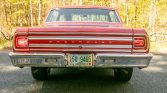 The interior is said to have been reupholstered in 2017 and is trimmed in black vinyl with matching door panels and carpets. Amenities include Chevelle-branded floor mats, a locking glove compartment, lap belts, a push-button radio, and a Hurst shifter.