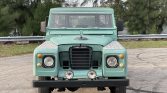 This 1965 Land Rover 88 is a left-hand drive Series IIA model that was produced by Metalurgica de Santa Ana S.A. in Spain and is finished in green over a black interior. The truck is powered by a 2.25-liter gasoline inline-four mated with a four-speed manual transmission and a two-speed transfer case, and additional equipment includes 16” steel wheels, manually-locking front hubs, driving lamps, troop-style rear seats, and an aftermarket rear bumper.
