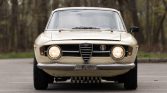 This 1966 Alfa Romeo GT 1300 Junior is finished in light yellow over black vinyl and is powered by a replacement 1.6-liter inline-four paired with a five-speed manual transmission. Equipment includes BWA wheels, disc brakes, and twin Weber carburetors. The car was sold new in Catania, Italy on December 22, 1966, and was acquired by the seller from a family member in 1996. Maintenance in 2019 reportedly included an oil change, tune-up, and carburetor rebuild.