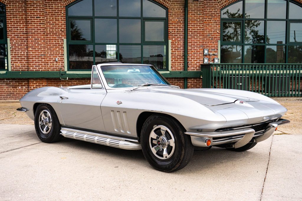 This 1966 Chevrolet Corvette convertible was acquired by the seller’s parents in 1977 and is said to have been stored in Pennsylvania from 1978 until 2004, when it was given to the seller and relocated to Florida. Recommissioning over the last 16 years has included rebuilds of the engine and transmission, as well as a reupholstered interior and refreshes of the brakes, suspension, steering, and fuel systems. Finished in silver with a black soft top over a black vinyl interior, the car is powered by a replacement 327ci V8 paired with a Muncie M21 four-speed manual transmission. Features include a Delco AM/FM push-button radio, a body-colored hardtop, power-assisted steering and four-wheel disc brakes, side-exit exhaust pipes, pop-up headlights, power windows, and chrome bumpers and trim.