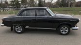 The third series GAZ Volga 21 was introduced in 1962, and this example is believed to have been repainted in black under previous ownership. It features bi-color taillights, mud flaps, tinted windows, dual mirrors, a chrome 36-slat grille, and a prancing deer hood ornament. A Soviet-era number plate is fitted up front, and the rear license plate is included in the sale.