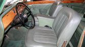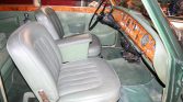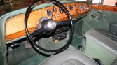 The conversion from four to two doors by James Young included elongating the front doors in addition to revising the quarter panels and windows. The roof, front fenders, front valance, and rear corners are said to have undergone repairs and paintwork as part of the seller’s refurbishment. Brightwork includes the vertical front grille, bumpers with overrides, Spirit of Ecstasy hood ornament, and dual fender mirrors.