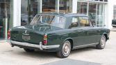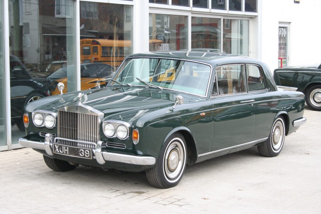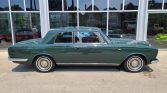 This 1966 Rolls-Royce Silver Shadow is one of 35 examples converted from four-door to two-door saloons by coachbuilder James Young Limited over a two-year production run. The car is finished in green over light green leather, and was converted from right-hand to left-hand drive under previous ownership. Power is from a 6.2-liter V8 paired with a four-speed automatic transmission, and additional features include air conditioning, power windows, and a Blaupunkt cassette stereo.