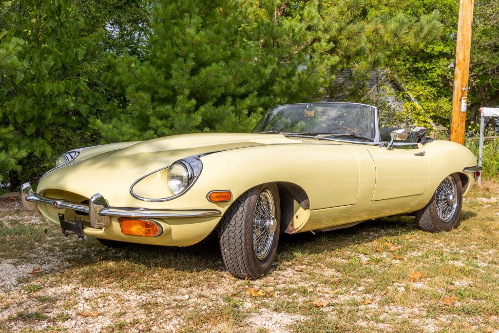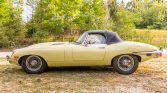 This 1969 Jaguar XKE roadster was built on November 13, 1969, and is said to have been refurbished in the mid-1980s before it was acquired by the seller in 2007. The car is finished in yellow over black leather upholstery, and power comes from a numbers-matching 4.2L inline-six paired with a four-speed manual gearbox. Features include a black soft top, electronic ignition, and an AM/FM radio.
