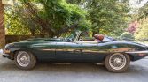 This 1969 Jaguar XKE is a Series II roadster that was built on September 15, 1969, and is said to have been purchased by the seller from its second owner in 2017 after approximately 15 years in storage. An ensuing refurbishment was completed in 2019. The car is finished in British Racing Green with a black soft top over red leather upholstery, and power comes from a numbers-matching 4.2-liter XK inline-six paired with a four-speed manual gearbox. Features include triple SU carburetors, an electronic distributor and ignition, an electric fuel pump, and air conditioning.
