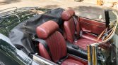 Delivered from the factory in Ascot Fawn, the car was stripped to bare metal and painted in its current British Racing Green in 2019. New body seals were also installed, along with a replacement antenna, windshield wiper arms, and washer nozzles. Features include taillights located below the rear bumper, wraparound chrome bumpers and bumperettes, a chrome luggage rack, driver-door-mounted and passenger-side fender mirrors, fender-mounted reflectors, and uncovered headlight buckets. There is a chip in the windshield, which is also delaminating in the upper-left corner.