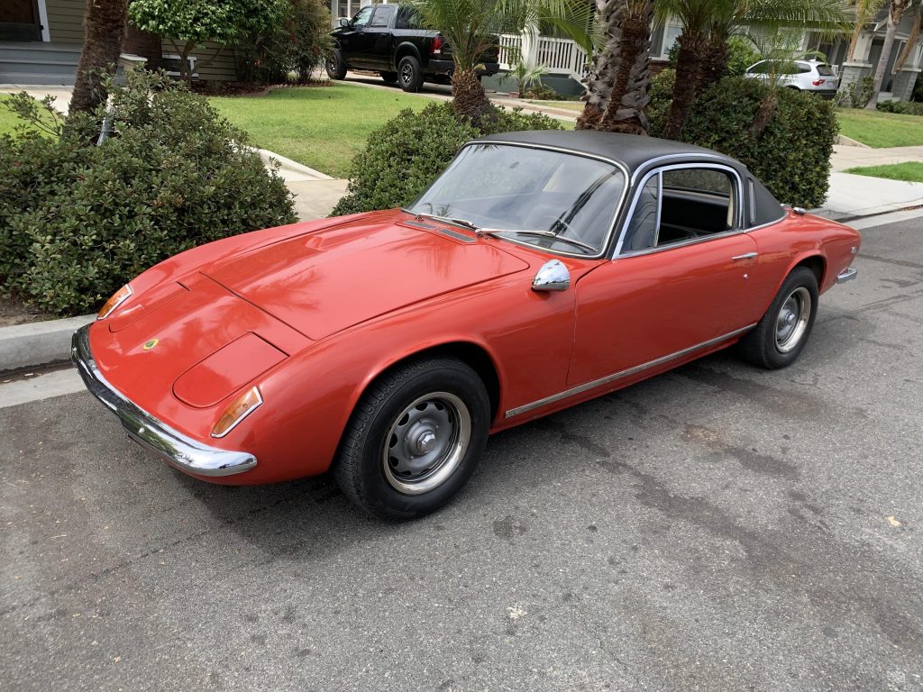This 1969 Lotus Elan +2 was built on November 20, 1969 and originally delivered to Canada, where it was acquired by the seller in 2013 and subsequently brought to California. Finished in red with a black vinyl roof over a black interior, the car is powered by a 1.6L twin-cam inline-four paired with a four-speed manual transmission. Features include electronic ignition, pop-up headlamps, disc brakes, and 13″ steel wheels. The car reportedly spent around 20 years in storage prior to the seller’s acquisition, and work has since included an overhaul of the brake system, a rebuilt fuel pump and dual Weber carburetors, and a replacement clutch release cylinder, ignition coil, rotoflex couplings, and rear shocks.