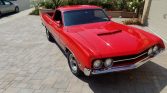 This 1970 Ford Ranchero was acquired by the seller in 1989 and subsequently refurbished. The truck is finished in red over black vinyl and is powered by a 351ci V8 paired with a three-speed automatic transmission. Features include 14″ mag-style wheels, front disc brakes, Gabriel rear shocks, a 9″ rear end, power steering, tubular headers, and a modern air-conditioning compressor. The seller states that recent service includes changing the fluids and replacing the oil pan, transmission pan, driveshaft, and differential pinion seal.