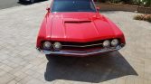 Five-hole 14″ alloy wheels are wrapped in 235/60 front and 245/60 rear BFGoodrich Radial TA tires. A Borgeson power steering conversion and a Saginaw pump are fitted, and braking is is from power-assisted front discs and rear drums.