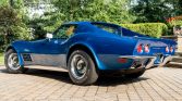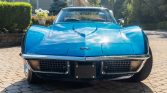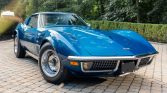 This 1971 Chevrolet Corvette coupe is finished in Bridgehampton Blue over blue vinyl and powered by a 350ci V8 paired with a three-speed automatic transmission. Equipment includes 15″ Rally wheels, removable T-top panels, chrome bumpers, a driver-side mirror, air conditioning, power steering, power brakes, and an AM/FM radio. The car was delivered new to Spicer Chevrolet Oldsmobile in Neosho, Missouri, and was acquired by the seller in July of 2020.