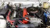 The 232ci inline-six features a red-finished block and valve cover and sends power to the rear or all four wheels through a three-speed manual transmission and a dual-range transfer case.