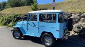 This 1971 Toyota Land Cruiser FJ40 is finished in blue with a white roof over gray and is powered by a 3.9-liter inline-six paired with a three-speed manual gearbox and a dual-range transfer case. Equipment includes a Smittybilt winch, 15″ steel wheels with polished hub caps, locking front Warn hubs, side mirrors, inward-facing rear bench seats, and a rear-mounted spare tire. The truck was acquired by the seller in 2020, and subsequent work included replacement of the…