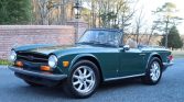 This 1971 Triumph TR6 is finished in green with a black soft top over beige vinyl and is powered by a 2.5-liter inline-six paired with a four-speed manual transmission. It was acquired by the seller in October 2020 after which an already started refurbishment was completed by Coventry Motor Works of Easton, Maryland, that reportedly included a repaint, new upholstery, rebuilding the engine and transmission, and powder-coating the frame. Equipment includes 16” Rota wheels, a powered antenna, a driver-side mirror, a chrome luggage rack, a Dual Electronics head unit, and a wood dashboard and shift knob.