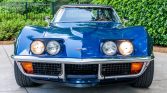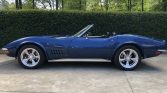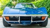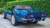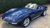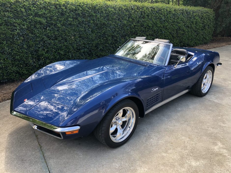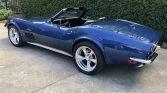 This 1972 Chevrolet Corvette convertible was purchased by the seller in April 2016 and subsequently refurbished with work including a repaint in blue, installation of 350ci V8 crate engine paired with a Muncie four-speed manual transmission, refreshing the interior, and servicing the braking, suspension, and steering systems. Features include American Racing Torque Thrust wheels, a black soft top, black upholstery, a push-button AM/FM radio with Bluetooth amplifier, a custom exhaust system with Magnaflow mufflers, and pop-up headlights.