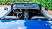 The car was refinished in Targa Blue Metallic during the refurbishment. Features include a black soft top, pop-up headlamps, fog lamps, chrome bumpers, dual exhaust outlets, and circular taillights. The seller notes that the exterior of the car has been treated with a ceramic paint protection coating.