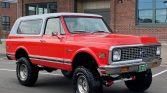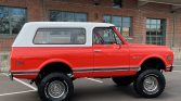This 1972 Chevrolet K5 Blazer was acquired by the seller in November 2013 and subsequently refurbished, with work including a color change to Hugger Orange and a refresh of the interior in Parchment vinyl. The truck is powered by a 350ci V8 paired with a four-speed manual transmission and a dual-range transfer case. Equipment includes a white removable hardtop, a lifted suspension, dual exhaust with Flowmaster mufflers, and an upgraded audio system. Other work completed under current ownership…