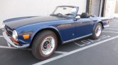 This 1972 Triumph TR6 was purchased in California by the seller’s brother in 1976, and it remained in the state through its acquisition by the seller in 2006. The car is powered by a 2.5-liter inline six mated to a four-speed manual transmission, and it is finished in Sapphire Blue with a black convertible top over black upholstery. Additional features include chrome bumpers, dual carburetors, a heater, and a cassette stereo. Services performed in February 2021 are said…