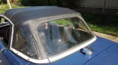 The exterior is finished in Sapphire Blue (96) with a black convertible top, which can be seen both raised and lowered in the gallery below and was replaced in 2003. Additional features include a black boot cover, chrome bumpers, a left-side bullet-style mirror, and dual exhaust outlets. The seller reports a rattle emanating from the hood while driving.