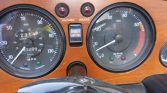 The three-spoke steering wheel with an aftermarket wrap frames Smiths instrumentation consisting of a 140-mph speedometer, a tachometer, and additional gauges displaying fuel level, coolant temperature, oil pressure, and battery voltage. The five-digit odometer shows 83k miles, approximately 4k of which were added by the seller. Total mileage is unknown. The steering wheel is said to shake at speed and the fuel gauge is currently inoperative.