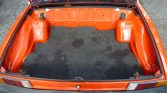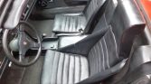 The interior features fixed-back bucket seats with black upholstery and matching carpeting and trim. High driver-seat bolsters from Auto Atlanta have been added, an aftermarket stereo has been mounted in the factory location, and the speakers have been replaced.