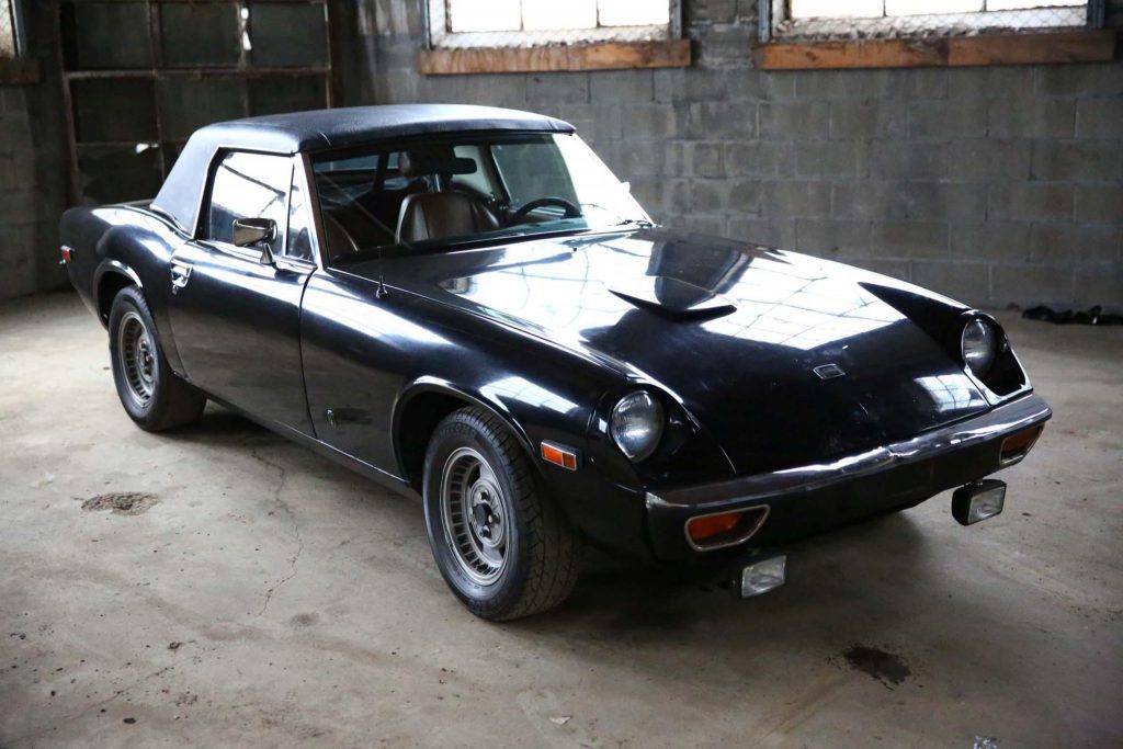 This 1974 Jensen-Healey Mk II roadster was built in June 1974 and is finished in black with a removable black vinyl hardtop over a tan vinyl interior. Power is provided by a 2.2-liter stroker inline-four mated to a four-speed manual transmission, and equipment includes a black soft top, a roll bar, driving lamps, sway bars, gas shocks, a replacement exhaust system, and an electronic ignition. Service during previous ownership is said to have included rebuilding the brakes, and the oil was changed in preparation for the sale.