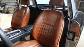 The two-spoke steering wheel fronts Smiths instrumentation consisting of a 140-mph speedometer and an 8k-rpm tachometer flanked by auxiliary gauges. The five-digit odometer shows 75k miles, approximately 50 of which have been added under current ownership; true mileage is unknown.